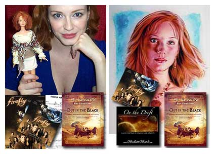 "I want to marry Saffron! I want to be her man. One of those she's hitched and then left ditched. We are a mighty clan! I want to marry Saffron! I want her for my bride. Even though my tale will end in jail You know it's worth the ride! You know it's worth the ride." OK, you could do better. And you really, really should. Over the years fans have written beautiful, funny, emotional songs about Mal, and the crew, and the ship, and the 'verse. But we've never heard any original songs about my favorite character, Saffron. As far as I can tell, there are exactly two: Saffron's wedding song from the soundtrack (later covered by The Bedlam Bards on their "On the Drift" CD) and "Saffron," a filk to the tune of Gordon Lightfoot's "Sundown" by the immortal Lux Lucre. That's it? I can't understand this. YoSaffBridge is definitely someone who would inspire songs. Cautionary ones, at least. We've seen stories, poems, even limericks, but where are the ballads about this beautiful, deceitful redhead? Well, they're here. During June, anyway. I'm announcing "Sing a Song of Saffron," a month-long contest for great prizes, to be judged by me, The Bedlam Bards, and Saffron herself, actress Christina Hendricks! Send in your best original song or filk and win autographed "Firefly" soundtracks, a Jason Palmer Saffron portrait, copies of the "Out in the Black" RPG, "Serenity" money packs, t-shirts, an autographed picture of the lady in question, even a custom-made Saffron Barbie! (IMG:http://www.serenitystuff.com/pics/saffronprizes.jpg) Songs will be posted at http://www.myspace.com/singasongofsaffron, and there will be prizes for Best Original, Best Filk, and a Browncoats' Choice chosen by reader votes. Entries will be accepted from June 1st - 30th, 2007, enter as often as you like. And everyone who enters will get a pack of 5 different marriage certificates from around the 'verse (with the bride's part helpfully filled in already)! So get to singing! Go to http://www.serenitystuff.com for more details and submission guidelines. |